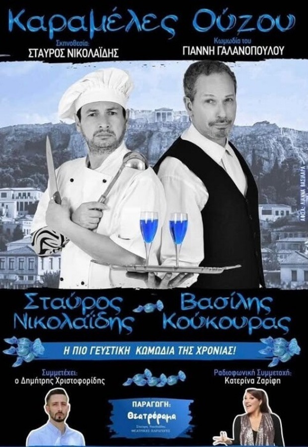 Γιάννη Γαλανόπουλου «ΚΑΡΑΜΕΛΕΣ ΟΥΖΟΥ» σε σκηνοθεσία Σταύρου Νικολαΐδη σε όλη την Ελλάδα.