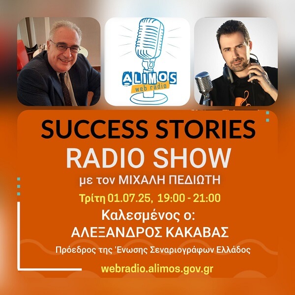 ΜΠ: Λοιπόν επιστρέψαμε εδώ στο Success Stories με το Μιχάλη Πεδιώτη σε μία κουβέντα πολύ ενδιαφέρουσα με τον Αλέξανδρο Κακαβά, συζητάμε για το χώρο του σεναρίου και το χώρο του κινηματογράφου, της τηλεόρασης. Είναι ευκαιρία όμως τώρα να μας πεις Αλέξανδρε για το κομμάτι της Λέσχης που αναφέραμε στην αρχή. Δράσεις της Λέσχης και γενικότερα και για νέους ανθρώπους που έχουν ενδιαφέρον, είτε για να γράψουν σενάριο, είτε έχουν κάτι έτοιμο είτε γράφουν βιβλία, δηλαδή πράγματα τα οποία μπορεί να βοηθήσουν και νέο κόσμο να εισέλθει στον κόσμο του σεναρίου που τον ενδιαφέρει το καλλιτεχνικό κομμάτι γενικότερα