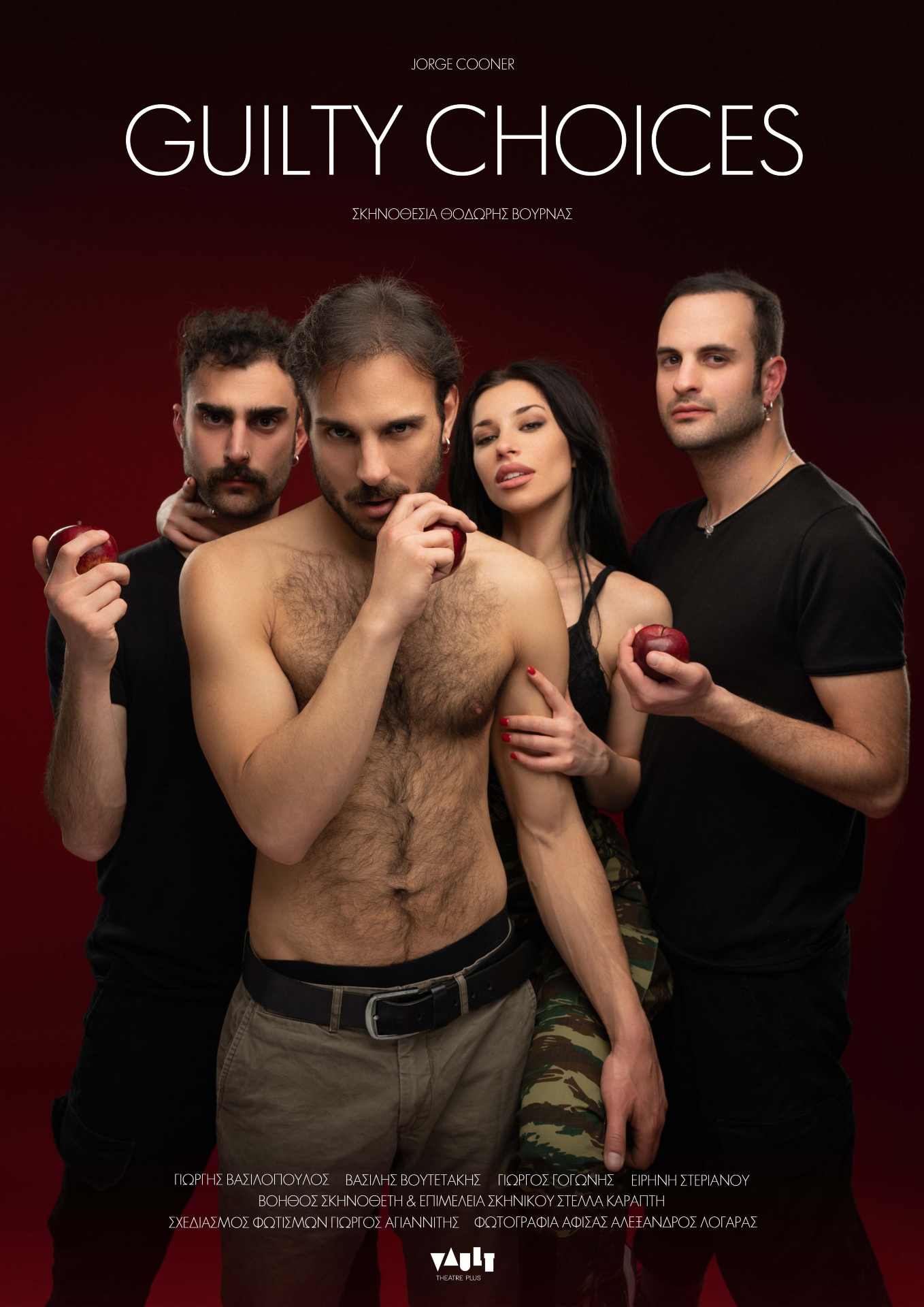Το έργο GUILTY CHOICES κάνει πρεμιέρα στις 3 Μαΐου σε σκηνοθεσία Θοδωρή Βουρνά στον πολυχώρο Vault. Mε ένα καστ νέων ηθοποιών σε μια αυστηρά ακατάλληλη παράσταση που μας κλείνει με πολλά ερωτηματικά το μάτι στα ένοχα μυστικά ενός φαινομενικά πολύ ευτυχισμένου ζευγαριού.