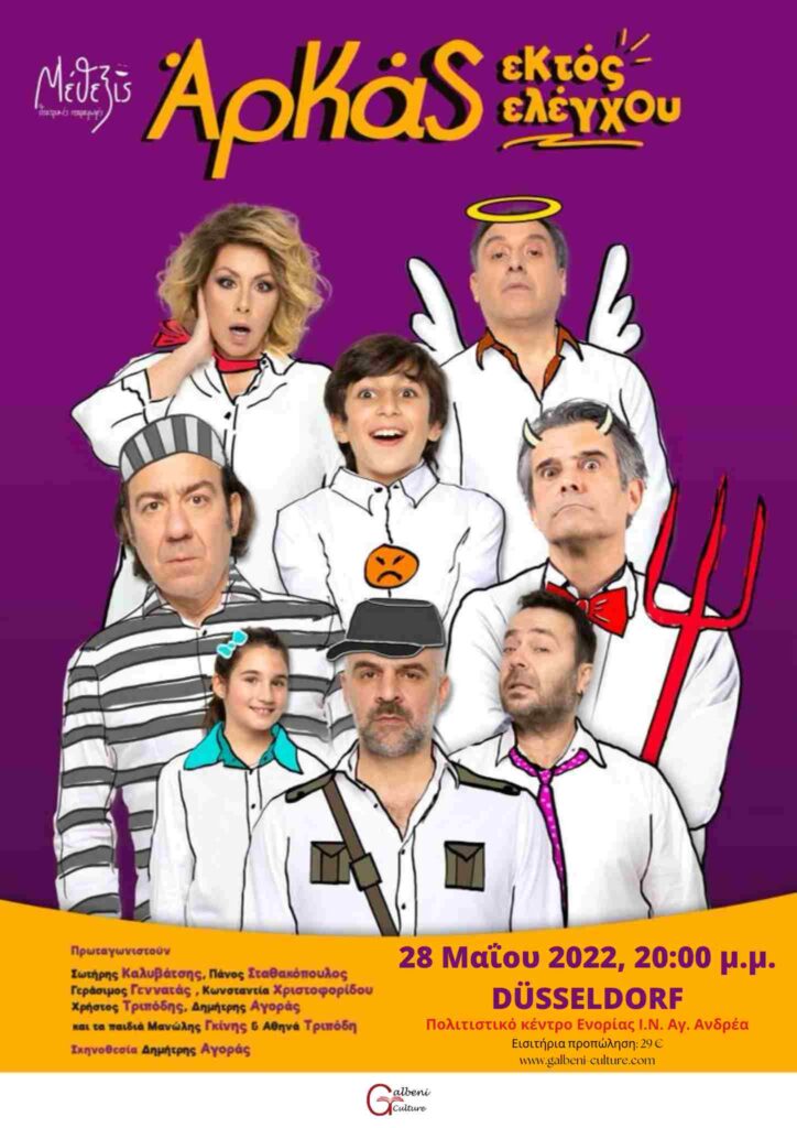 Η παράσταση «Αρκάς – Εκτός ελέγχου» θα είναι η πρώτη παράσταση με την οποία θα ξεκινήσει αυτό το κομμάτι της δράσης μας για το ελληνόφωνο κοινό της Γερμανίας.